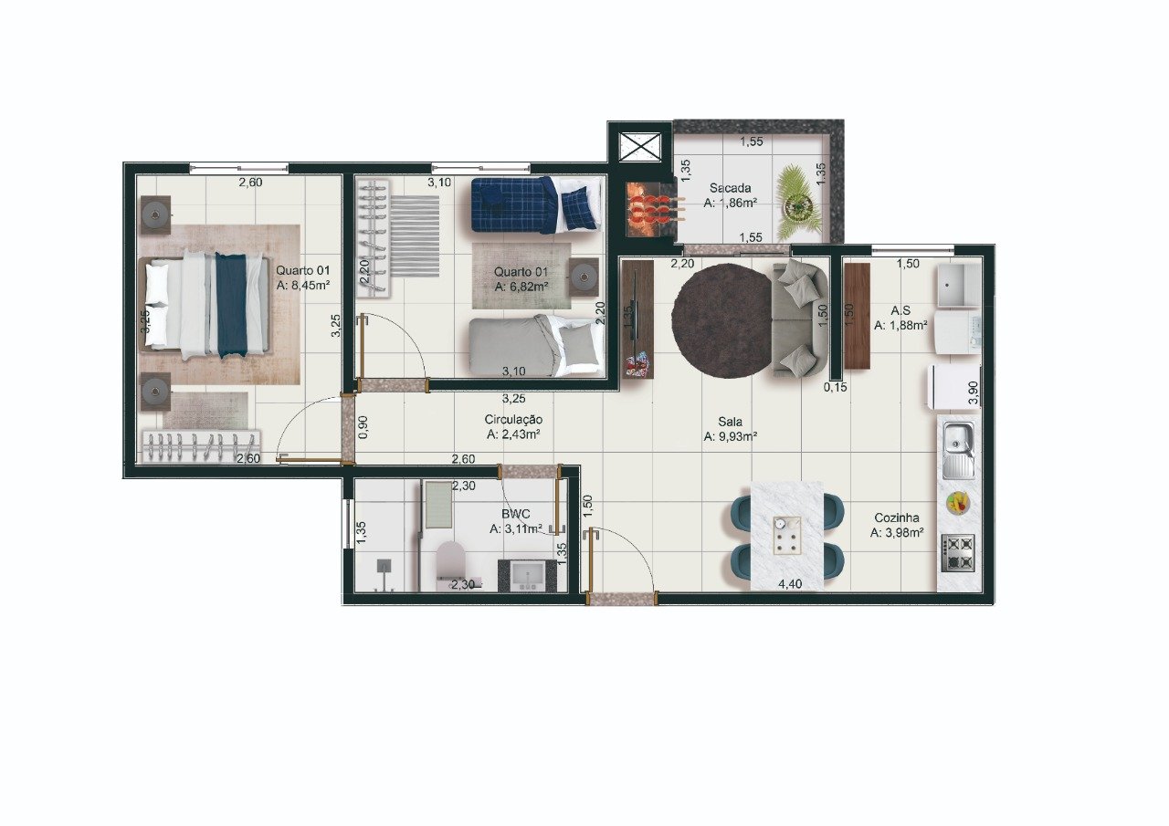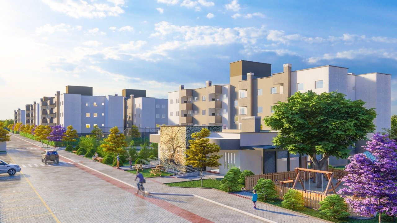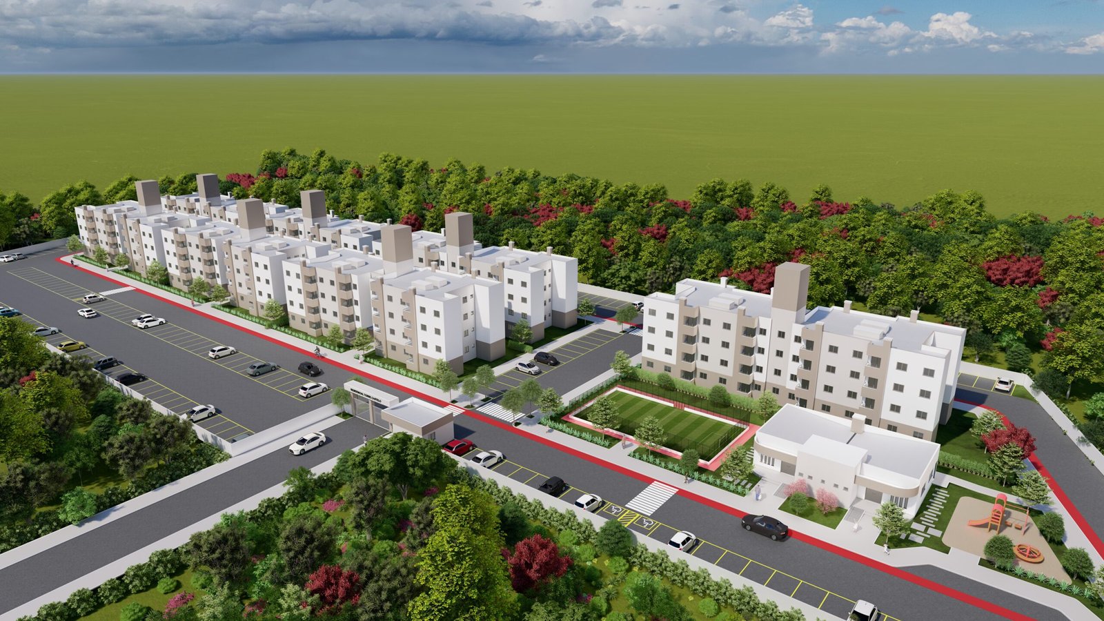 Portal de acesso | Espaço eventos e espaço gourmet | Quadra poliesportiva de areia | Playground | Ciclovia | Espaços arborizados | Espera para split nos quartos | Esquadria de alumínio pintada | Interfone | Medidor individual de água, energia e gás | A segurança de um condomínio fechado | Paisagismo ampliando o conforto | Espaço entre os blocos com ótima orientação solar e ventilação trazendo conforto aos aptos | Salão de festas com potencial para eventos maiores ou com possibilidade de redução para eventos mais reservados | Pavimentação intertravada em toda a área para melhoria dos sistemas de drenagem e infiltração de águas pluviais | Captação dos drenos de ar-condicionado para irrigação dos espaços verdes | Amplas áreas de lazer para praticar esportes e se divertir.